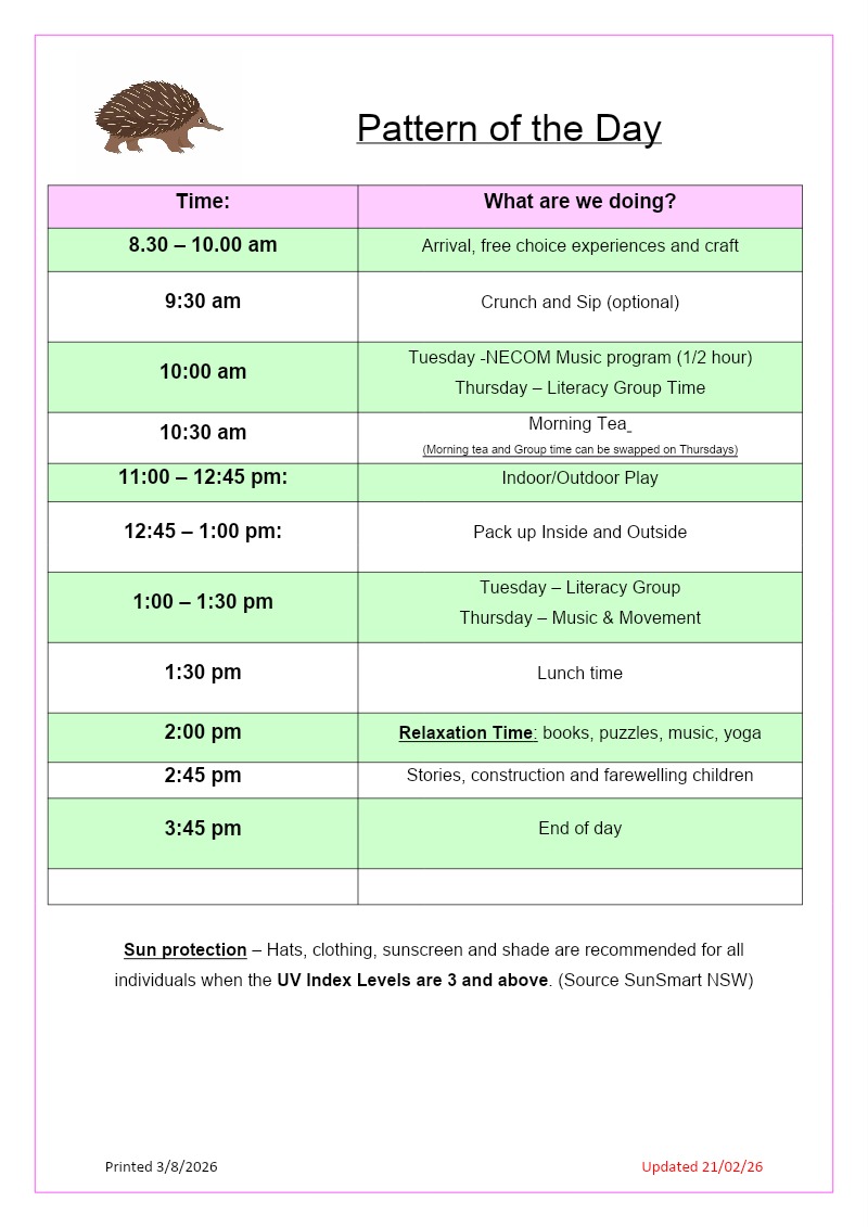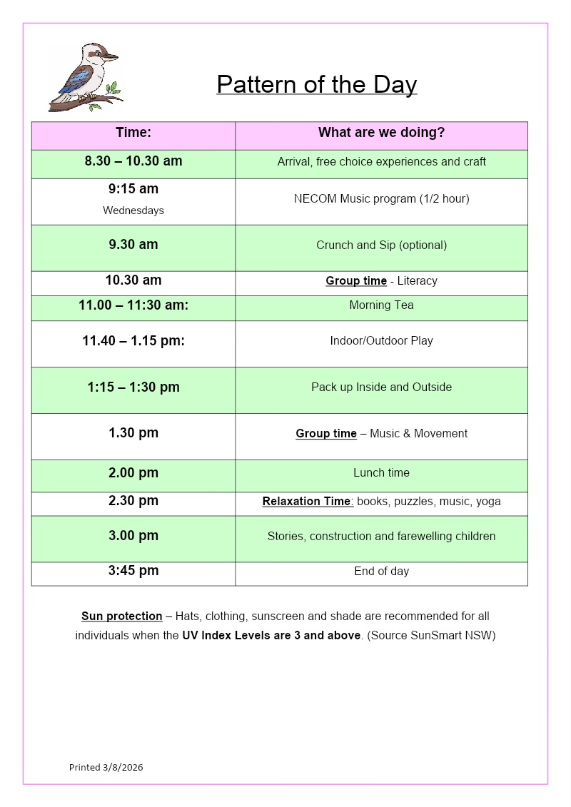 Our program is guided by the Early Years Learning Framework Version 2.0, which supports children’s learning and development through five key outcomes. Through play, exploration and intentional teaching, educators support children to develop: